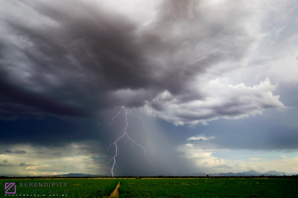 A monsoon storm rolls over southern Arizona with a lightning bolt.